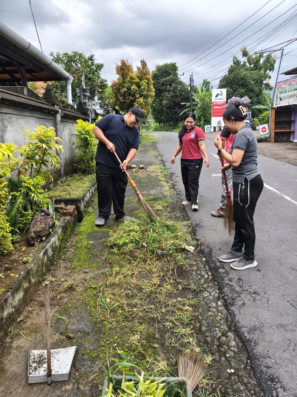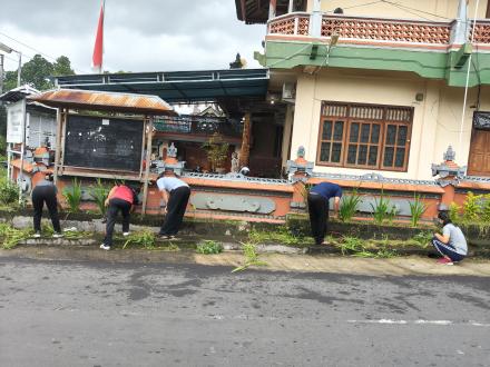 Gotong royong difokuskan pada pembersihan halaman kantor, penataan taman, serta pembersihan saluran air di lingkungan kantor desa. Kegiatan ini bertujuan untuk menciptakan lingkungan kerja yang bersih, rapi, dan nyaman.